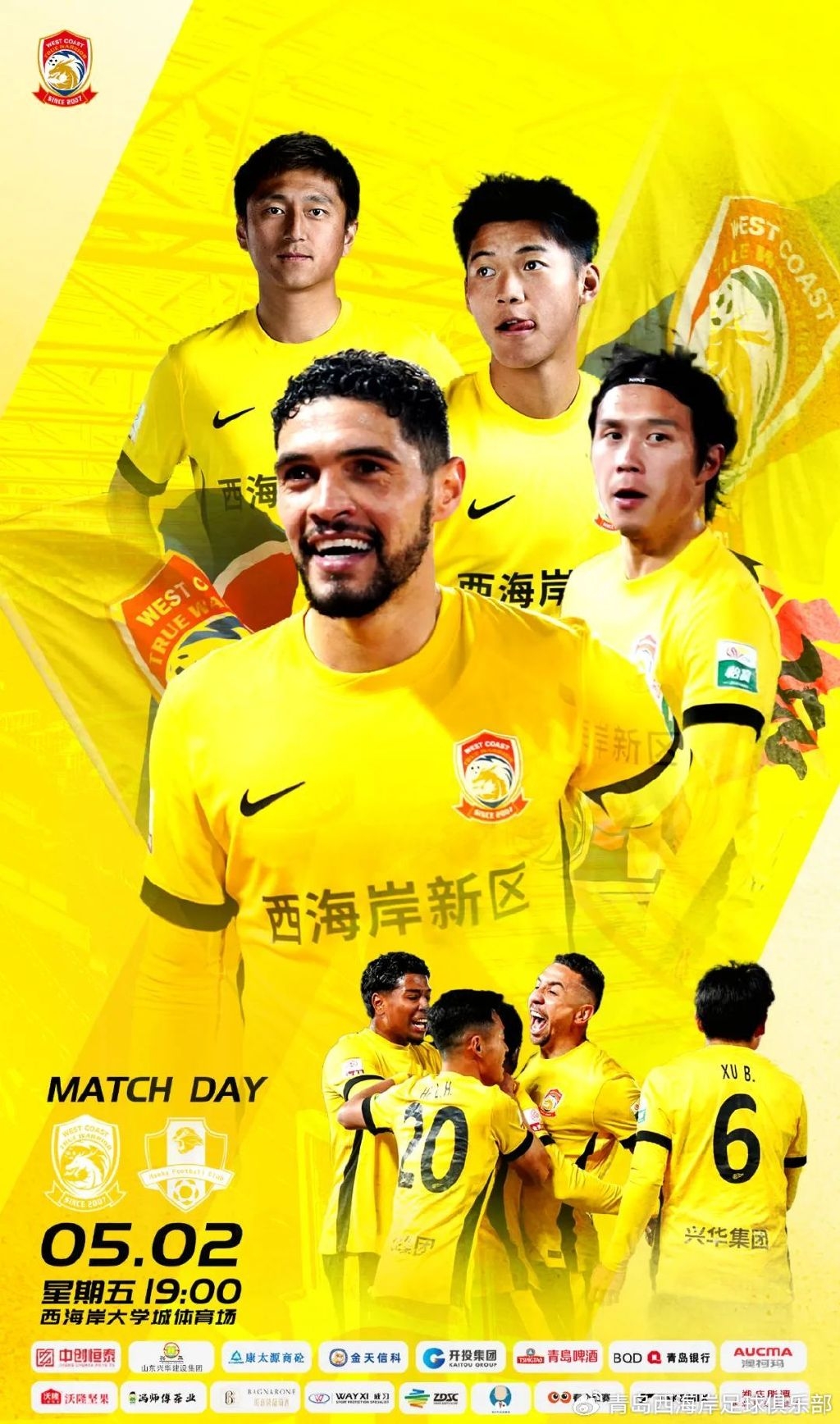 05月02日讯 北京时间今晚19点,中超第10轮,青岛西海岸主场迎战梅州客家,赛前双方公布首发阵容。