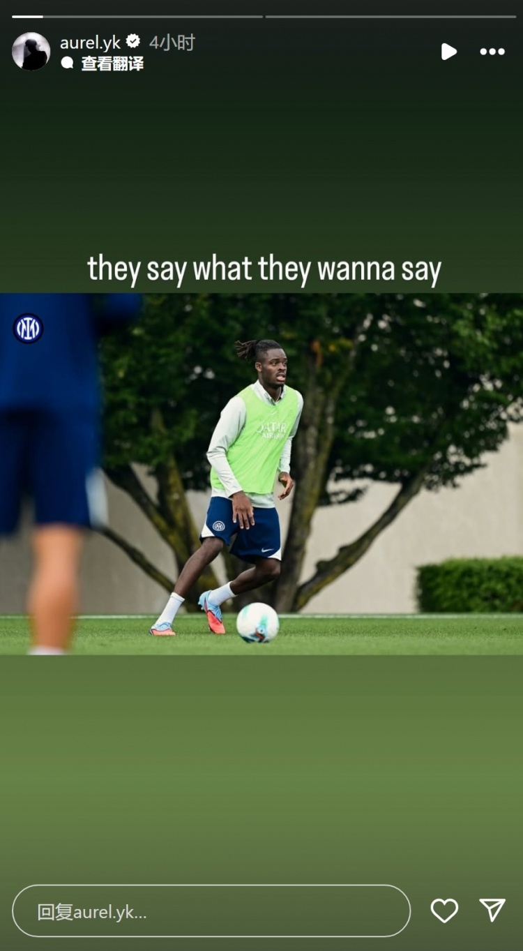 比塞克社媒晒出训练照片,配文:“他们想说什么就说什么。”并配上了国米的队徽。