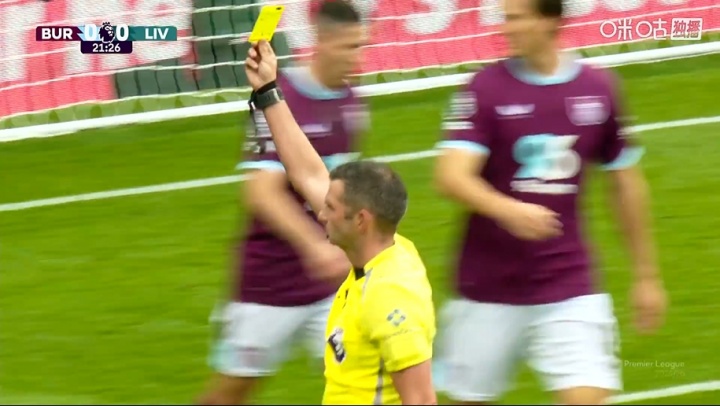 09月14日讯 英超第4轮,利物浦客战伯恩利,比赛第22分钟,科尔克兹在禁区内倒地,裁判果断吹罚假摔并出示黄牌。